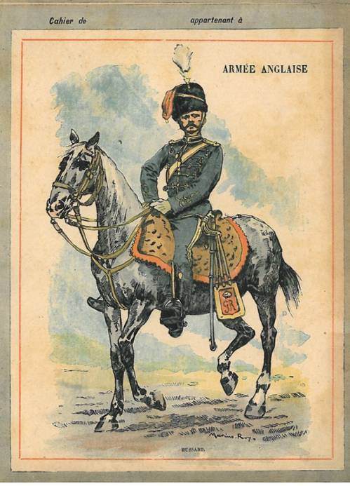 Couverture non numérotée : Hussard. Chromolithographie sur papier épais beige. En pages intérieures, texte explicatif signé A. Dally et carte des Îles britanniques. Au dos, gravure en n/b (vedette de dragon).