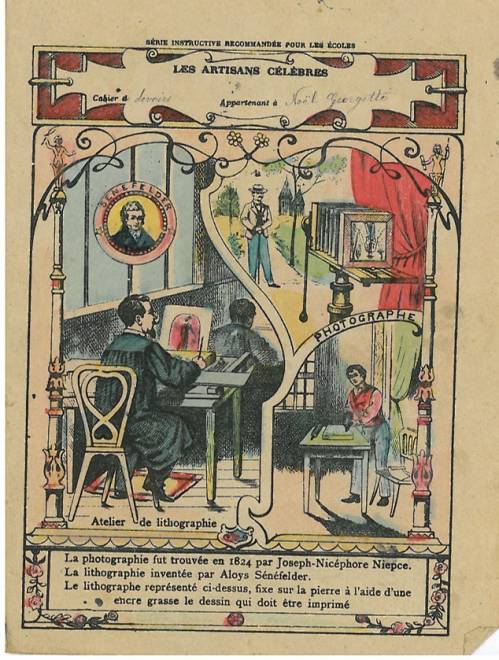 Couverture n° 9 : Niepce (photographie) / Senefelder (lithographie). Fulton (un des premiers bateaux à vapeur / Locomotive de George Stephenson en 1829. Jolie frise avec inventions. Chromolithographie sur papier épais beige. Au dos