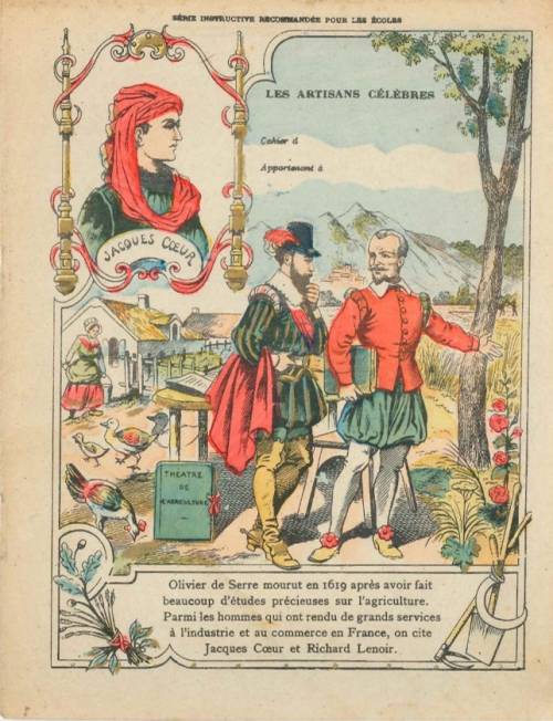 Couverture n° 3 : Jacques Cœur / Olivier de Serre. Chromolithographie sur papier épais beige. Au dos, texte explicatif anonyme.