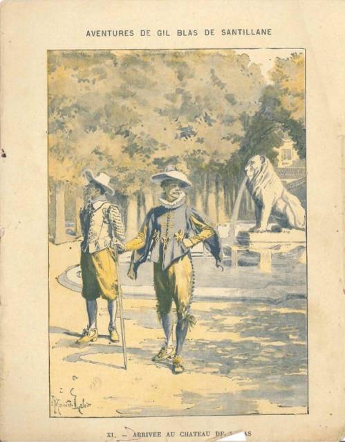 Cette série, numérotée et incomplète dans la collection, a comme titre complet Les aventures de Gil Blas de Santillanne racontées, d’après Lesage, par Mahlinder. Les illustrations sont de Maurice Leloir (1853-1940). D’une famille d’artistes, membre de l'Ecole de Crozant, il inonde, dans les années 1890, le marché du livre d'images sur les costumes et les attitudes du passé. Illustrateur de livres pour enfant, il illustre des ouvrages majeurs (Paul et Virgine, de Bernardin de Saint-Pierre, Les trois mousquetaires et La dame de Monsoreau, d’Alexandre Dumas, et Les confessions de Jean-Jacques Rousseau). Fondateur de la Société d'histoire du costume, il est l’illustrateur de 4 tomes de l’Histoire du costume de l'Antiquité à 1914 et du Dictionnaire du costume et de ses accessoires, des armes et des étoffes : des origines à nos jours,