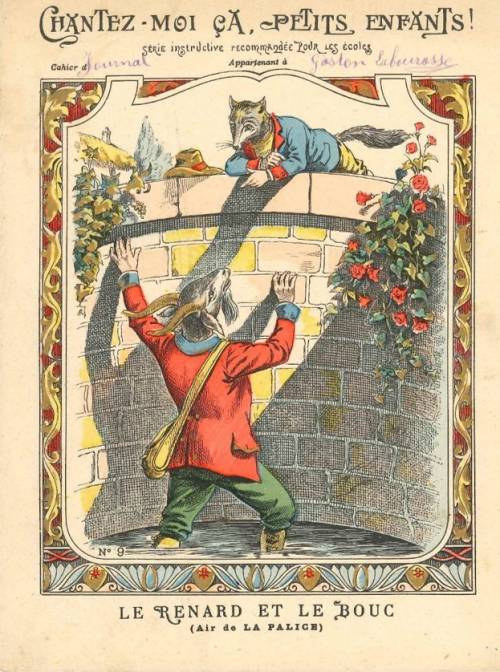 Cette série, numérotée et incomplète dans la collection, a comme sous-titre « Fables et chansons ». Elle reprend des fables de la Fontaine et les fait chanter sur un air connu de chanson enfantine. C’est une production des papeteries de Clairefontaine, fondée en 1858 par Jean-Baptiste Bichelberger qui reprend un moulin à papiers ((à base de chiffon) et le modernise. Vingt ans plus tard, son fils et son gendre, Campion, y introduisent le bois comme matière première et lancent dans la fabrication d’enveloppes et de cahier. De 1904 à 1914, l’entreprise (1000 employés) est dirigée par Louis Nusse et Étienne Bodet. « Série instructive recommandée pour les écoles », elle se distingue par la variété et la qualité des frises en 1ère de couverture. Illustrateur inconnu.