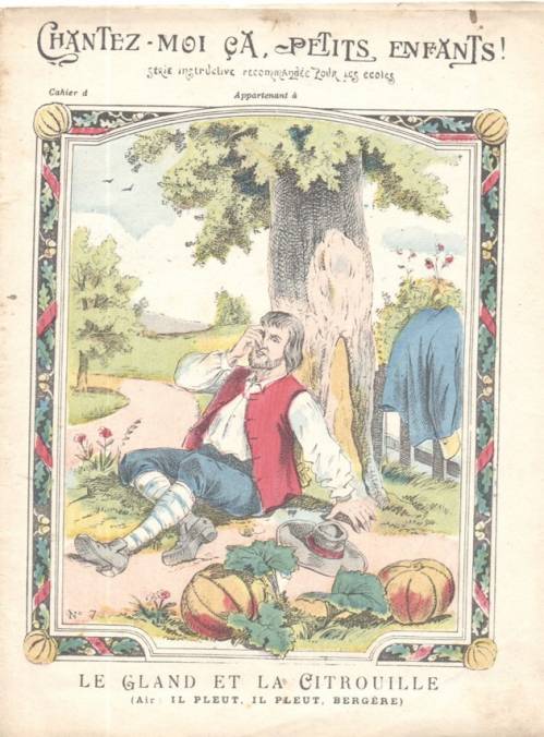 Cette série, numérotée et incomplète dans la collection, a comme sous-titre « Fables et chansons ». Elle reprend des fables de la Fontaine et les fait chanter sur un air connu de chanson enfantine. C’est une production des papeteries de Clairefontaine, fondée en 1858 par Jean-Baptiste Bichelberger qui reprend un moulin à papiers ((à base de chiffon) et le modernise. Vingt ans plus tard, son fils et son gendre, Campion, y introduisent le bois comme matière première et lancent dans la fabrication d’enveloppes et de cahier. De 1904 à 1914, l’entreprise (1000 employés) est dirigée par Louis Nusse et Étienne Bodet. « Série instructive recommandée pour les écoles », elle se distingue par la variété et la qualité des frises en 1ère de couverture. Illustrateur inconnu.
