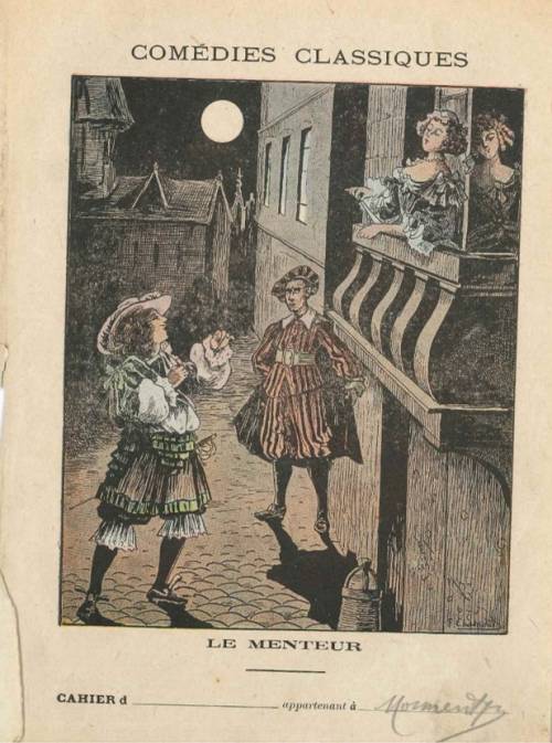 Couverture non numérotée. : Le menteur. Chromolithographie sur papier épais beige. Au dos, extrait de la pièce de Corneille.