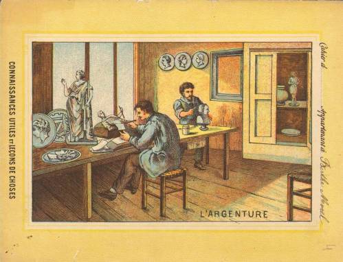 Couverture non numérotée : L’argenture. Chromolithographie sur papier épais beige. Fond jaune. Au dos, texte explicatif anonyme, en deux colonnes.