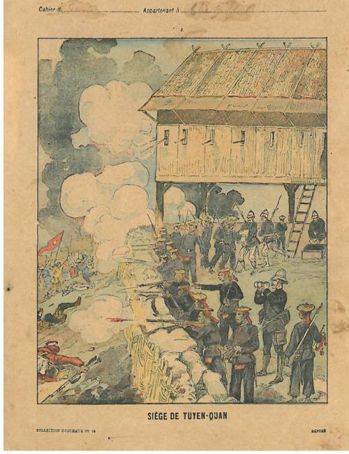 Couverture non numérotée : Siège de Tuyen-Quan. Chromolithographie sur papier beige épais. .Au dos, texte explicatif anonyme