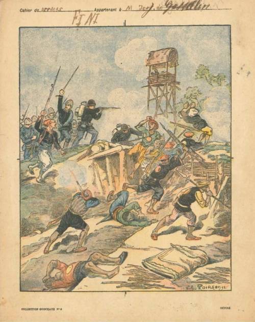 Couverture non numérotée : Prise de Sontay. Chromolithographie sur papier beige épais, Au dos, texte explicatif anonyme