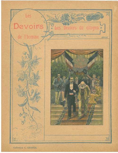 Cette série est incomplète dans la collection. Son titre complet est Les devoirs de l’homme / Les devoirs du citoyen. La série est une des nombreuses productions de l’éditeur saumurois Charier, qui montre ici clairement sa mission : l’instruction civique de l’écolier.