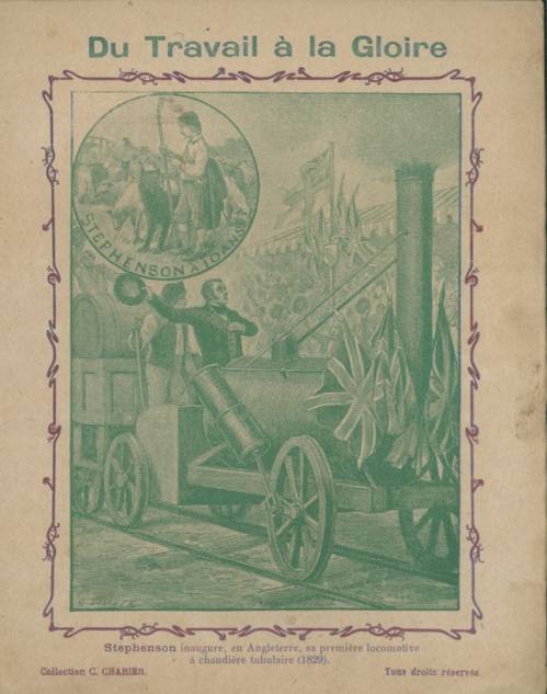 Couverture non numérotée : Stephenson. Chromolithographie sur papier épais beige. Au dos, biographie signée Er. Richa, l’anagramme de l’éditeur.