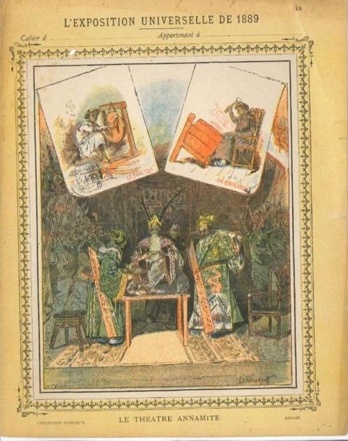 Cette importante série, non numérotée et incomplète dans la collection, se divise en 4 thèmes : l’histoire de l’habitation, les beaux-arts, les colonies françaises, les sections étrangères. C’est une des nombreuses productions la maison d’édition parisienne Veuve Auguste Godchaux… Illustrateur inconnu.