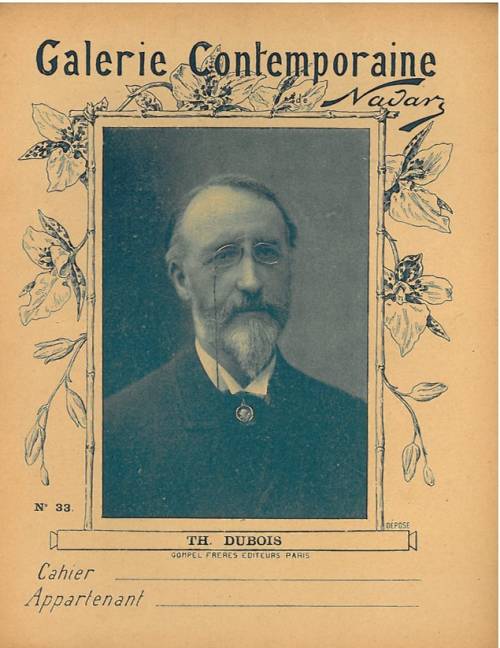 Couverture n°33 : Dubois, organiste et compositeur. Chromolithographie sur papier épais. Cliché en n/b de Nadar et frise florale. Dos arraché.