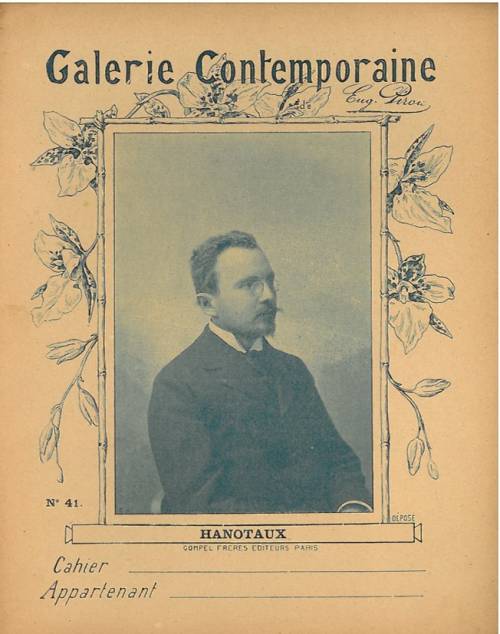 Couverture n°41 : Hanotaux, diplomate, historien et homme politique. Chromolithographie sur papier épais. Cliché en n/b de Nadar et frise florale. Dos arraché.