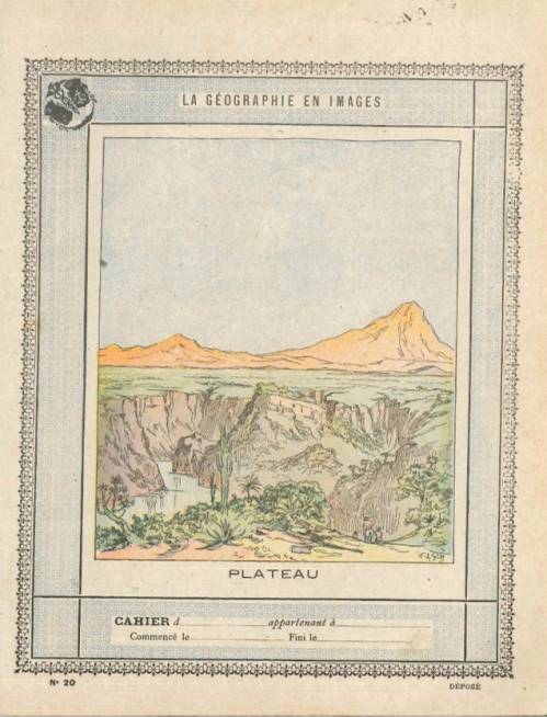 Couverture n°20 : Le plateau. Chromolithographie sur papier beige épais avec frise bleue et noire... Au dos, texte explicatif signé Emile Hanzen-Blangsted