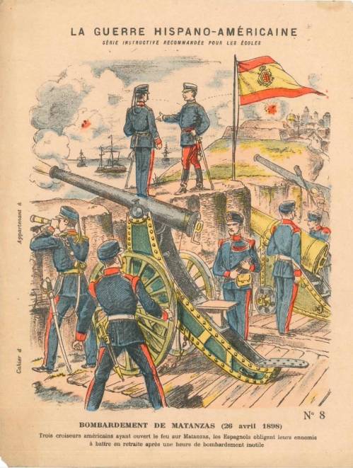 Couverture n°7 : Défaite des Espagnols devant Manille (Iles Philippines). Chromolithographie sur papier beige épais. Au dos, texte explicatif anonyme sur les origines de la guerre.