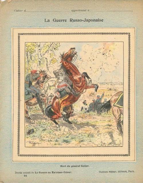 Les illustrations sont de Louis Bombled, de son nom complet Bombled de Richemont (1862-1928). Elles sont extraites de La guerre en Extrême-Orient. Illustrateur de presse (La Caricature, Le Chat noir, Le Journal pour rire, Le Journal amusant, Le Journal des voyages, Le Monde illustré et L’Illustration), il est le dessinateur attitré du supplément illustré du Petit Journal, Illustrateur d’ouvrages (Courteline, Scott, Cooper, Jules Michelet et son Histoire de France), il a illustré de nombreuses séries de couvertures de cahier, notamment sur les thèmes militaires, historiques et coloniaux. On lui doit aussi de nombreux albums pour enfant, comme Je serai soldat et L’alphabet militaire.