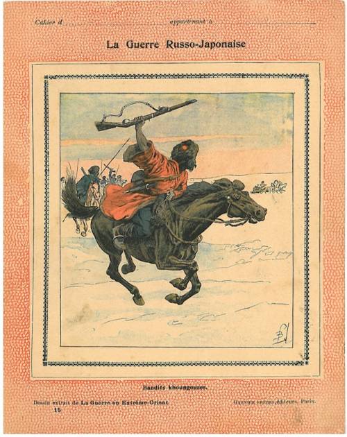Les illustrations sont de Louis Bombled, de son nom complet Bombled de Richemont (1862-1928). Elles sont extraites de La guerre en Extrême-Orient. Illustrateur de presse (La Caricature, Le Chat noir, Le Journal pour rire, Le Journal amusant, Le Journal des voyages, Le Monde illustré et L’Illustration), il est le dessinateur attitré du supplément illustré du Petit Journal, Illustrateur d’ouvrages (Courteline, Scott, Cooper, Jules Michelet et son Histoire de France), il a illustré de nombreuses séries de couvertures de cahier, notamment sur les thèmes militaires, historiques et coloniaux. On lui doit aussi de nombreux albums pour enfant, comme Je serai soldat et L’alphabet militaire.