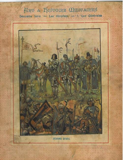 Couverture n° 8 : Jeanne d’Arc. Chromolithographie sur papier beige épais. Fond rose. En pages intérieures et au dos, texte signé Général H. de Sarrepont.
