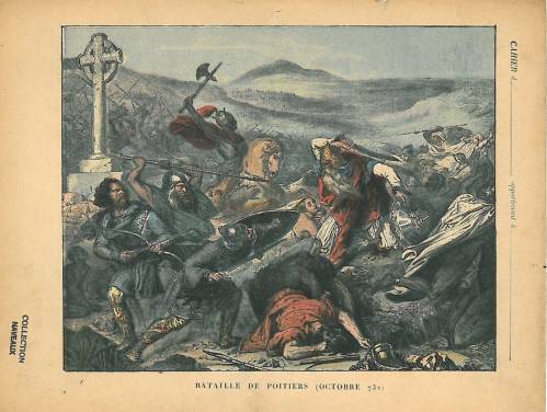 Couverture non numérotée : Bataille de Poitiers (octobre 732). Chromolithographie sur papier épais beige. Au dos, texte explicatif signé A-L.