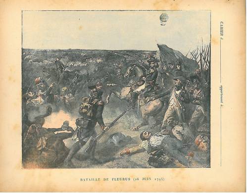 Couverture non numérotée : Bataille de Fleurus (20 juin 1794). Chromolithographie sur papier épais beige. Au dos, texte explicatif signé A-L.