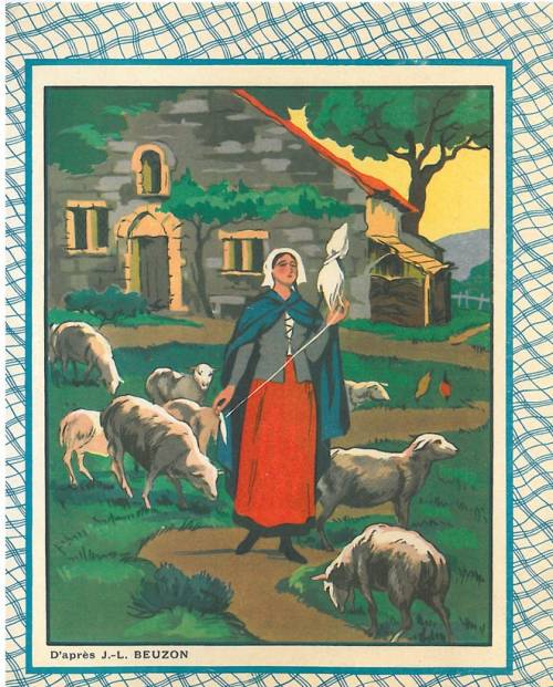 Cette série, non numérotée et incomplète dans la collection, est illustrée « d’après JL. Beuzon ». Sous cette signature, sans doute deux frères, Joseph et Louis, actifs dans les années 1910 1930… On leur connait des affiches colonialistes, notamment sur les expositions coloniales de Paris et de Marseille, et des illustrations historiques à la ligne épurée et aux couleurs vives, que l’écolier retrouvera dans ses manuels scolaires et sur ses couvertures de cahier.