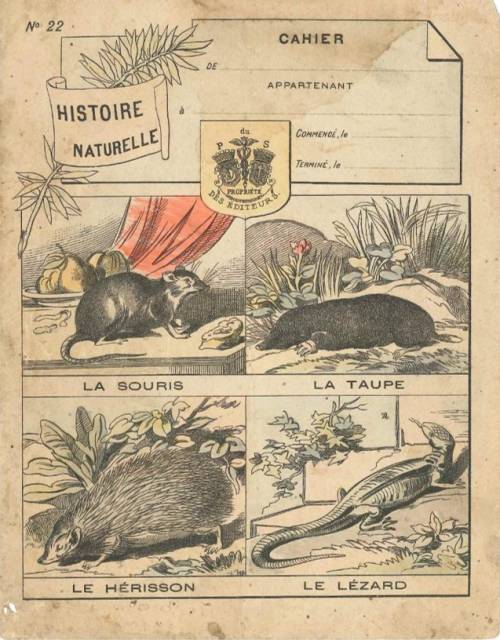 Couverture n°22 : La souris, la taupe, e hérisson et le lézard. . Chromolithographie sur papier épais beige Cartouche « Histoire naturelle » avec branche feuillue. Au dos, texte explicatif anonyme.