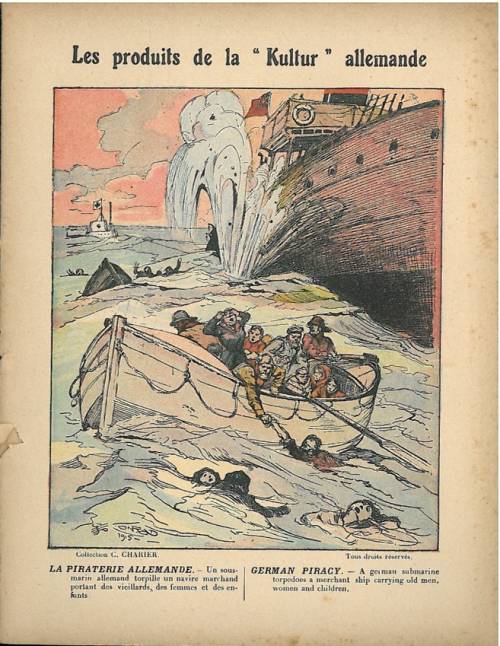 Cette série a pour titre exact « Les produits de la Kultur allemande ». Elle est étonnante par son ampleur : une couverture n° 108 dans la collection ! Numérotée, parfois non numérotée comme ici, et incomplète dans la collection, c’est une production de la maison saumuroise Charier et un bel exemple de son patriotisme exacerbé et de sa germanophobie.