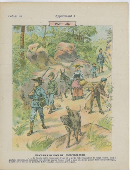 Couverture n° 4 : (sans titre). Chromolithographie sur papier épais beige. Au dos, extrait de l’ouvrage (pas de nom d’auteur).