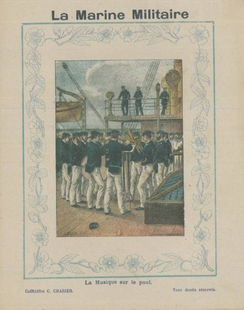 Couverture non numérotée : La musique. Chromolithographie sur papier épais beige. Elégante frise bleue. Au dos, texte explicatif signé Er. Richa, anagramme de l’éditeur.
