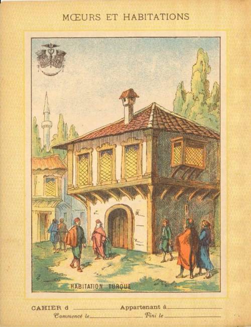 Couverture non numérotée : Habitation turque. Chromolithographie, gravure sur fond vert. Au dos, texte explicatif signé Pascal Allain.