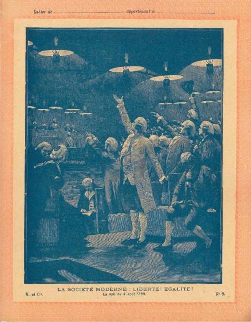 Couverture n° 8 : La société moderne / Liberté, égalité. Chromolithographie sur papier épais beige. Bichromie ; Au dos, texte explicatif anonyme.