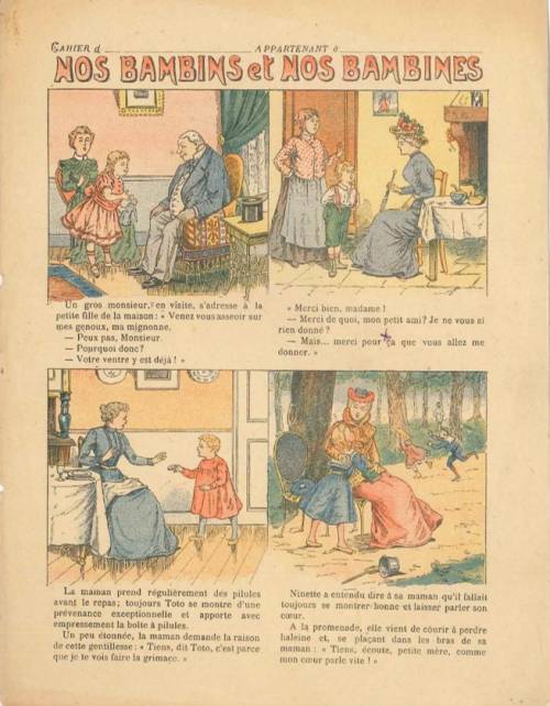 Couverture non numérotée : 4 saynètes-blagues. Chromolithographie sur papier épais beige. Au dos, extrait des Cahiers de dessin, Cours préparatoire, de Chopin.