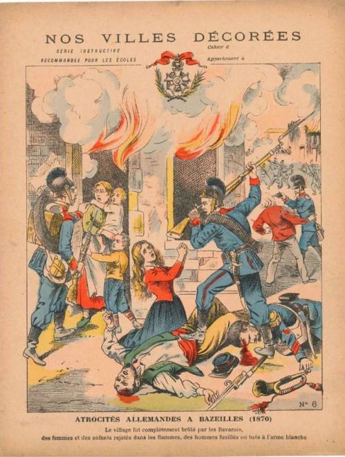Cette série, « instructive recommandée pour les enfants », numérotée et complète dans la collection, évoque l’héroïsme et la résistance de villes pendant les guerres révolutionnaires et napoléoniennes, ainsi que pendant la guerre de 1870. C’est une des nombreuses productions des papeteries vosgiennes de Clairefontaine. En 1858, Jean-Baptiste Bichelberger reprend un moulin à papiers ((à base de chiffon) créé au 16ème siècle et le modernise. Vingt ans plus tard, son fils et son gendre, Campion, y introduisent le bois comme matière première et se lancent dans la fabrication d’enveloppes et de cahiers. De 1904 à 1914, l’entreprise (1000 employés) est dirigée par Louis Nusse et Étienne Bodet. Illustrateur inconnu.