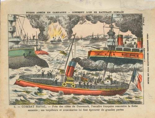 Cette série, numérotée et complète, a la particularité d’être co-produite par les papeteries de Clairefontaine et l’imagerie Vagné à Pont-à-Mousson. Sous-titrée « Comment on se battrait demain », elle imagine comment se déroulerait une prochaine guerre avec l’Italie et l’Allemagne… « Série instructive recommandée pour les écoles ».
