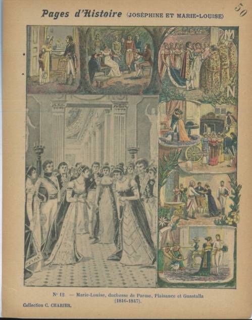 Le titre complet de cette série, numérotée et incomplète dans la collection, est Pages d’histoire (Joséphine et Marie-Louise). C’est une des très nombreuses productions de la maison d’édition Charier, qui par ses nombreuses séries de couvertures de cahier a produit, selon les mots de Charier, une véritable « Encyclopédie pour la jeunesse ».