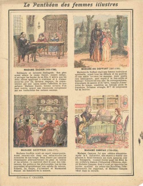 Cette série, non numérotée et incomplète dans la collection, présente, par 4 gravures légendées, 4 personnalités féminines par couverture. C’est une production de l’éditeur saumurois Camille Charier, qui disait de la cinquantaine des séries de couvertures qu’il avait éditées, qu’elles formaient une « encyclopédie enfantine ».