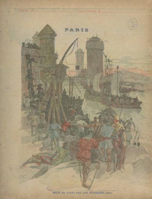 Couverture non numérotée : Siège de Paris par les Normands 5880). Chromolithographie sur papier épais beige. En pages intérieures, textes explicatif anonymes : le siège de Paris par les Normands, Lutèce. Au dos, plan de Lutèce et gravure en n/b sur les ruines de palais des thermes