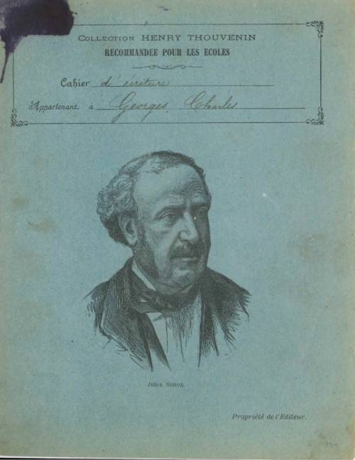 Couverture non numérotée : Monochromie sur papier épais… cahier d’écriture appartenant de Georges Charles. Au dos, texte explicatif anonyme.