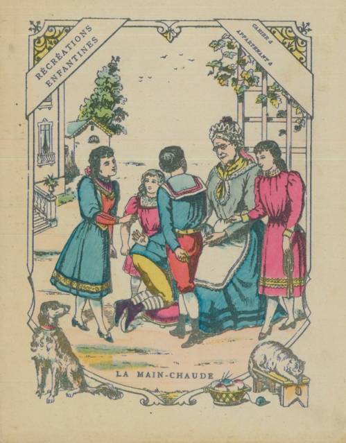 Couverture non numérotée : La main-chaude. Chromolithographie sur papier épais beige. Au dos, texte explicatif anonyme