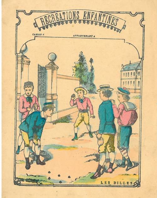 Couverture non numérotée : Les billes. Chromolithographie sur papier épais beige.. Au dos, texte explicatif anonyme