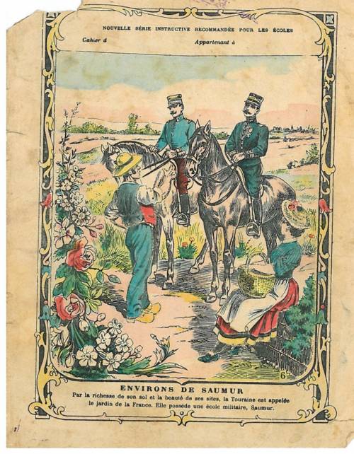 Couverture n°6 : Environs de Saumur Chromolithographie sur papier épais beige. Elégante frise style Art déco. Au dos, texte explicatif anonyme dans encadrement.