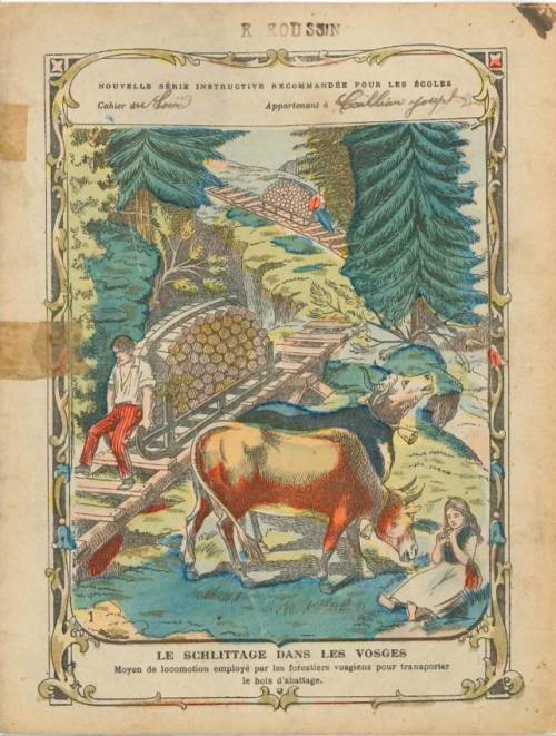 Cette série, numérotée et incomplète dans la collection, est une des nombreuses productions des papeteries vosgiennes de Clairefontaine. En 1858, Jean-Baptiste Bichelberger reprend un moulin à papiers ((à base de chiffon) créé au 16ème siècle, le modernise, sous le nom de Papeterie de Clairefontaine. Vingt ans plus tard, son fils et son gendre, Campion, y introduisent le bois comme matière première et se lancent dans la fabrication d’enveloppes et de cahier. De 1904 à 1914, l’entreprise (1000 employés) est dirigée par Louis Nusse et Étienne Bodet. Illustrateur inconnu.
