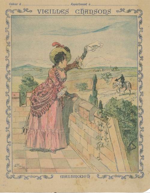 Couverture non numérotée : Malbrough. Chromolithographie sur papier épais beige. Au dos, paroles et premières portées.