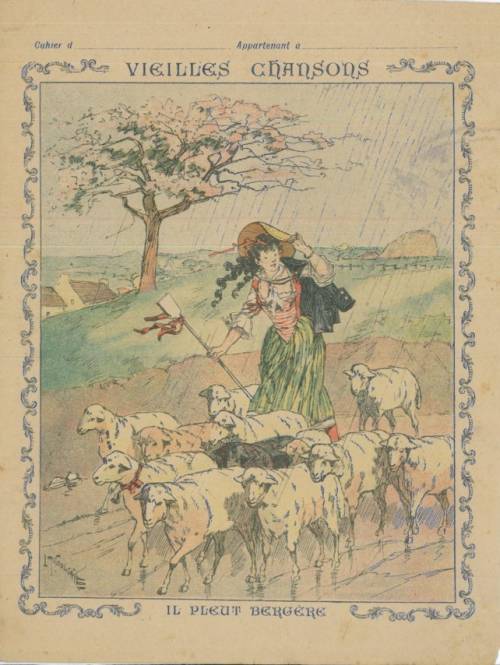 Couverture non numérotée : Il pleut, bergère. . Chromolithographie sur papier épais beige. Au dos, paroles et premières portées.