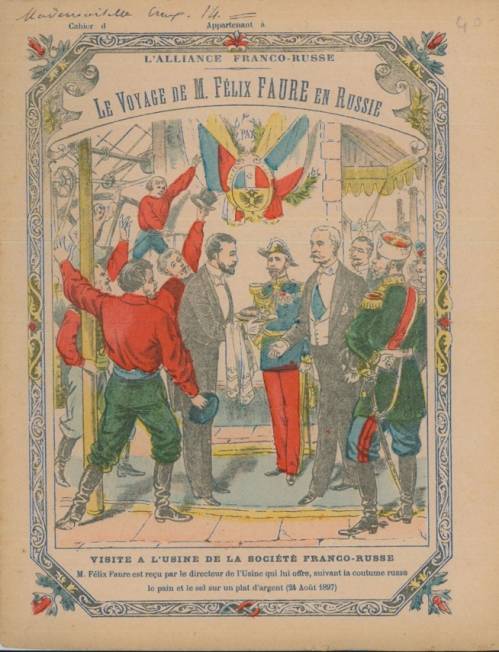 Couverture n° 9 : Visite à la société franco-russe, le 24 août 1897. Chromolithographie sur papier épais, avec rehauts dorés. Au dos, texte anonyme explicatif.