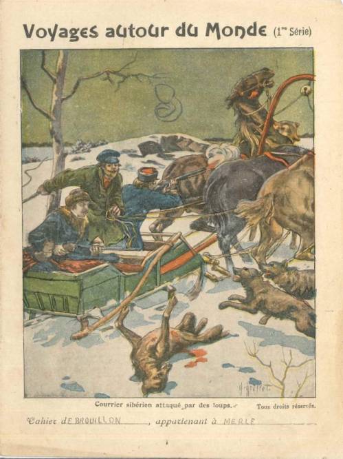 Cette importante série, non numérotée et incomplète dans la collection, est une des nombreuses productions des papeteries vosgiennes de Clairefontaine. En 1858, Jean-Baptiste Bichelberger reprend un moulin à papiers (à base de chiffon) créé au 16ème siècle et le modernise. Vingt ans plus tard, son fils et son gendre, Campion, y introduisent le bois comme matière première et se lancent dans la fabrication d’enveloppes et de cahiers. De 1904 à 1914, l’entreprise (1000 employés) est dirigée par Louis Nusse et Étienne Bodet.