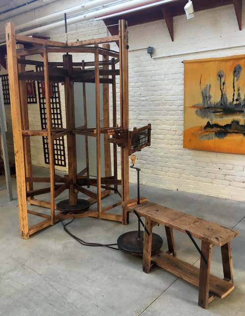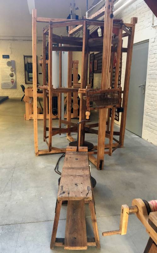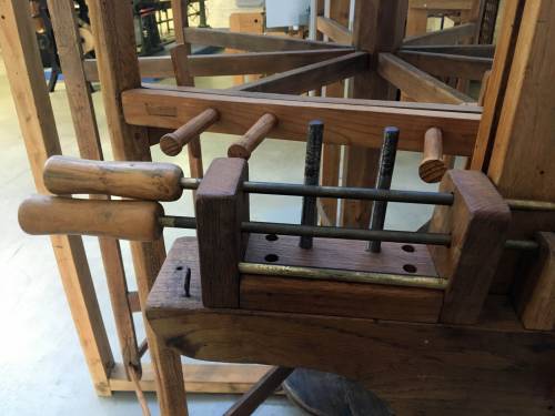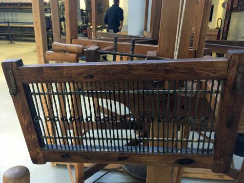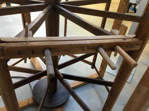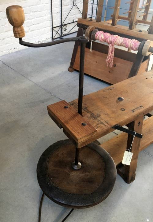 La personne s'assoit sur le banc et puis ensuite prend ses bobines