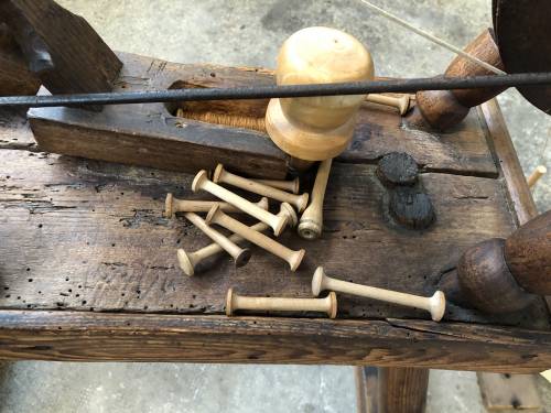 Le rouet permet de confectionner les bobines de fil pour la navette (trame)