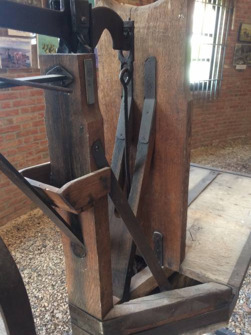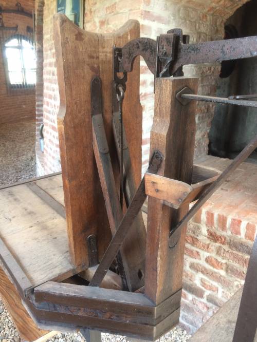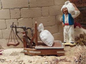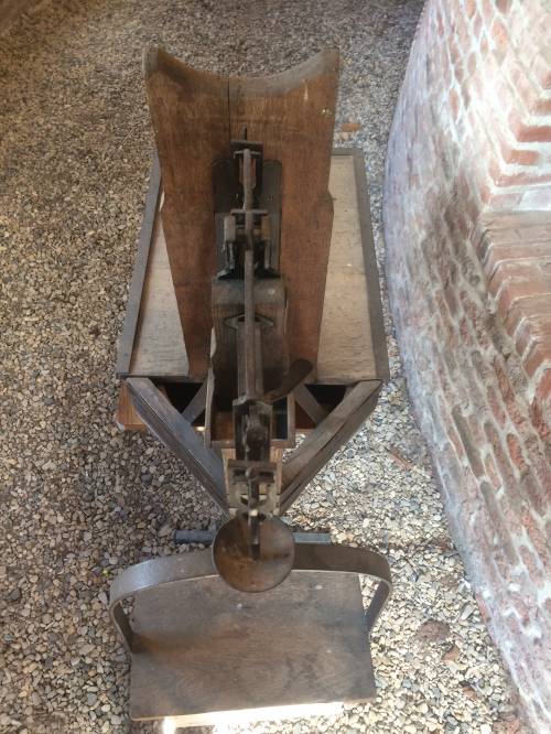 Ce type de pèse sac est utilisé dans les moulins car servant principalement à peser les nombreux sacs de farine. Ils étaient généralement déposés sur le grand plateau de bois et sur le contrepoids étaients diposés des poids. En fonction des poids utilisés (leur poids était gravé sur les objets) le meunier pouvait déterminer le poids du sac.