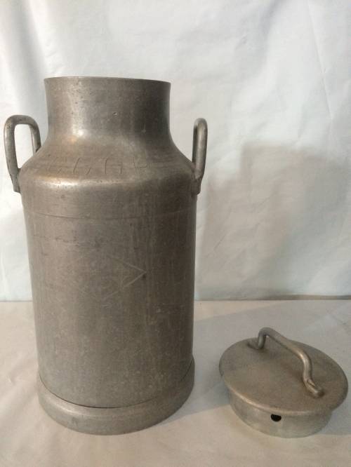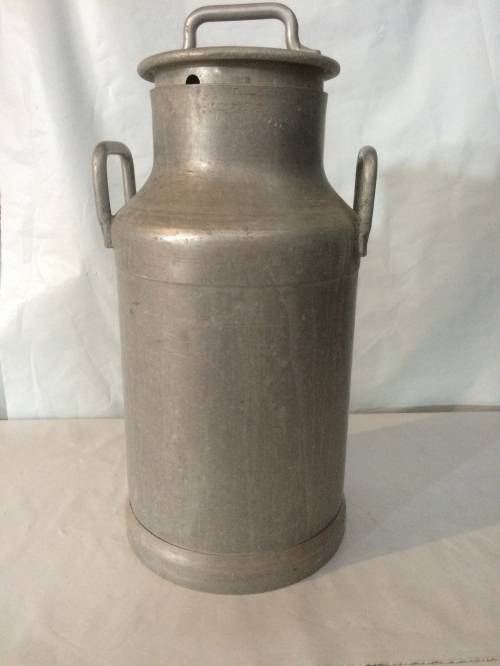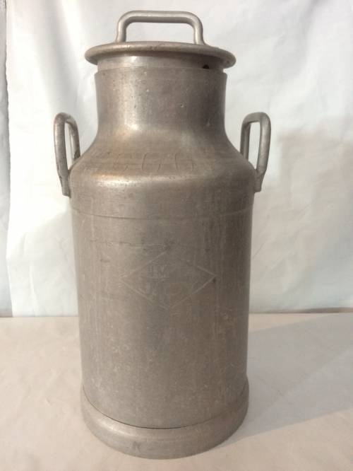 Ce bidon à lait en aluminium servait à recueillir et transporter le lait de vache de la ferme. L'agriculteur récolte généralement le lait, lors de la traite, dans un seau en bois.