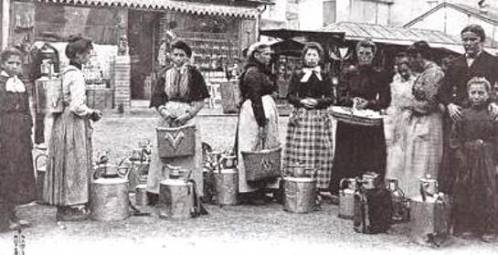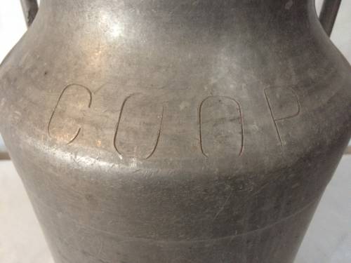 Le lait est ensuite transvasé dans un bidon réalisé en aluminium ou en fer blanc, lors de ce transfert, l'agriculteur se servait de ce qu'on appelle un couloir à lait pour filtrer (objet ayant la même fonction qu'une passoire).