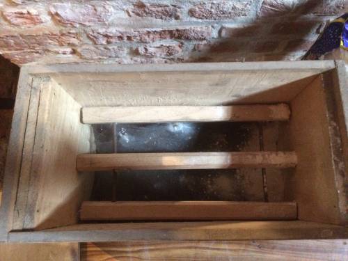 Les blutoirs se retrouvent souvent dans les moulins et sont généralement de grandes tailles et parfois actionnés par divers mécanismes. Ce petit blutoir au vu de sa taille est individuel et servait surtout aux personnes faisant leur propre pain.